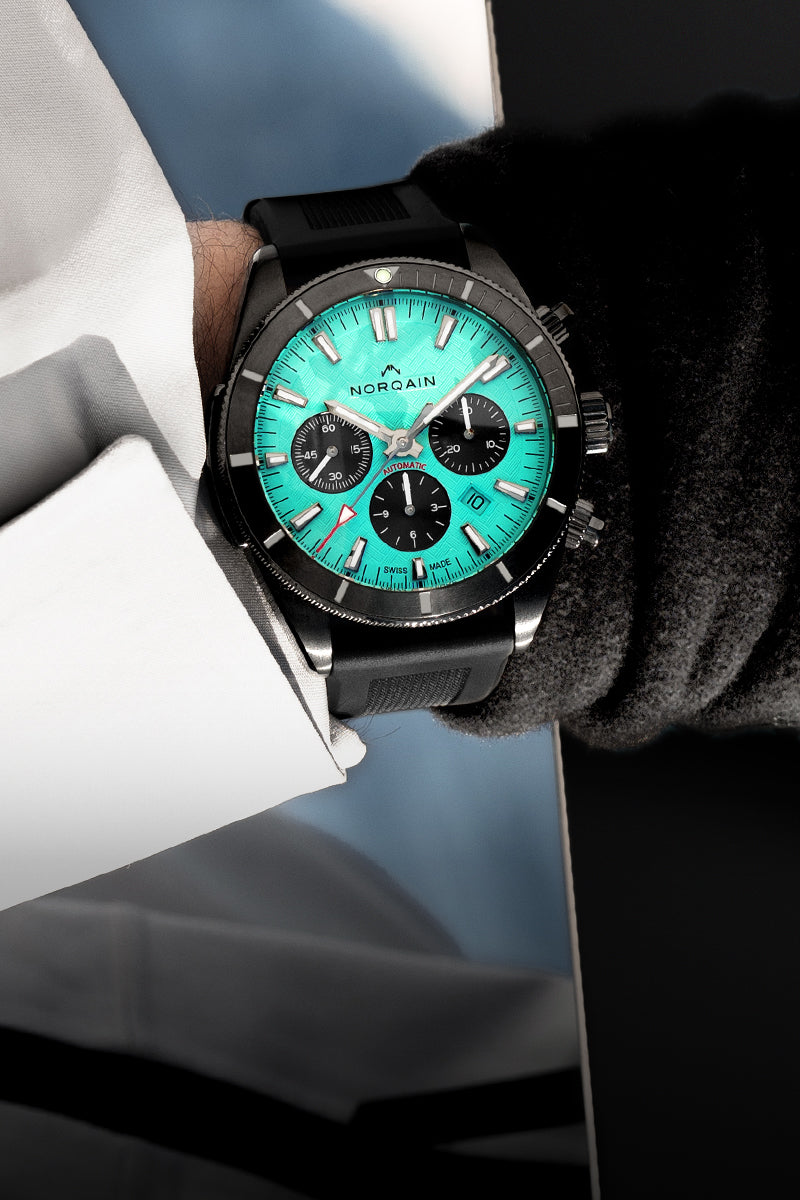 Die Adventure-Linie verkörpert den Nervenkitzel, die Natur zu erkunden und zu bezwingen – die Pfade, die Gipfel und die Gezeiten. Das einzigartige “NORQAIN Pattern” ist von den Schweizer Bergen inspiriert.