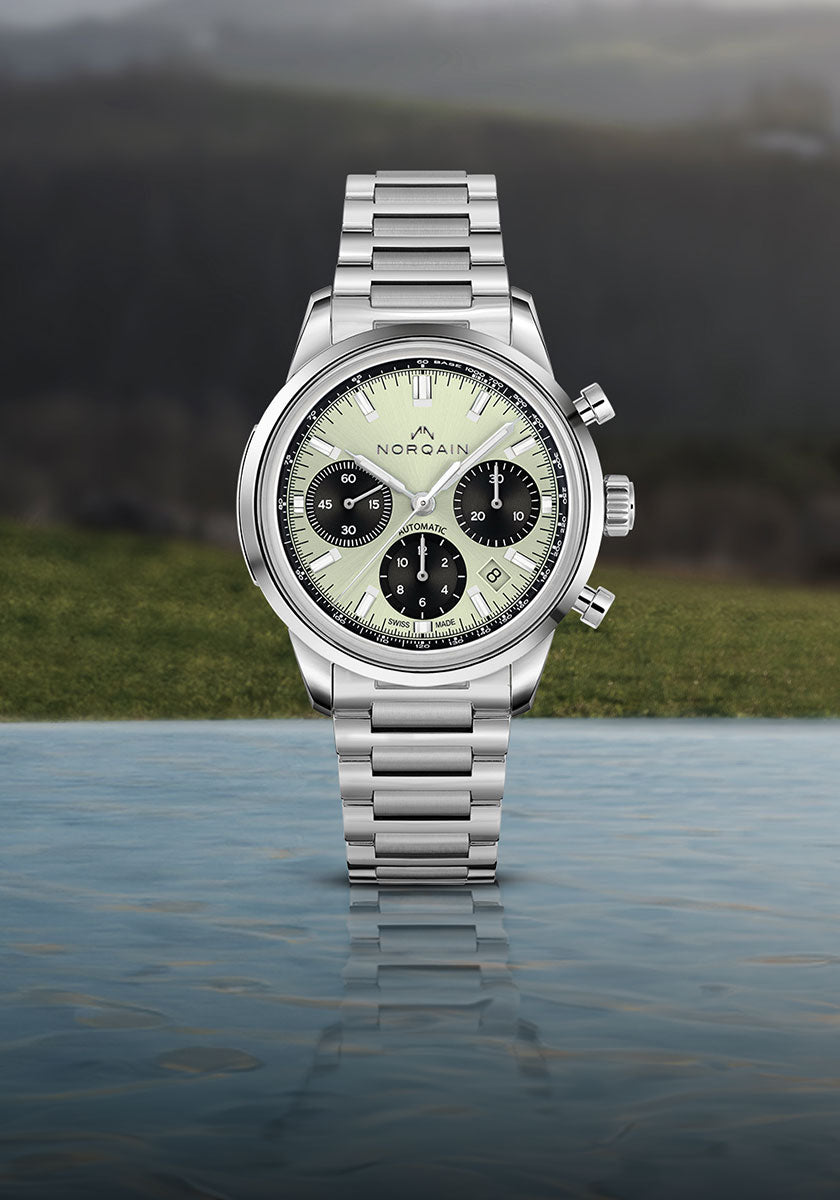 The Freedom collection is strongly tied to an appreciation of the great outdoors that carries across generations. The vintage-inspired design elements including the pistachio-coloured dial evoke the aesthetics of the 60s.