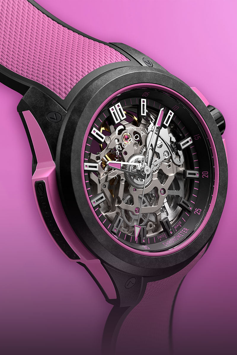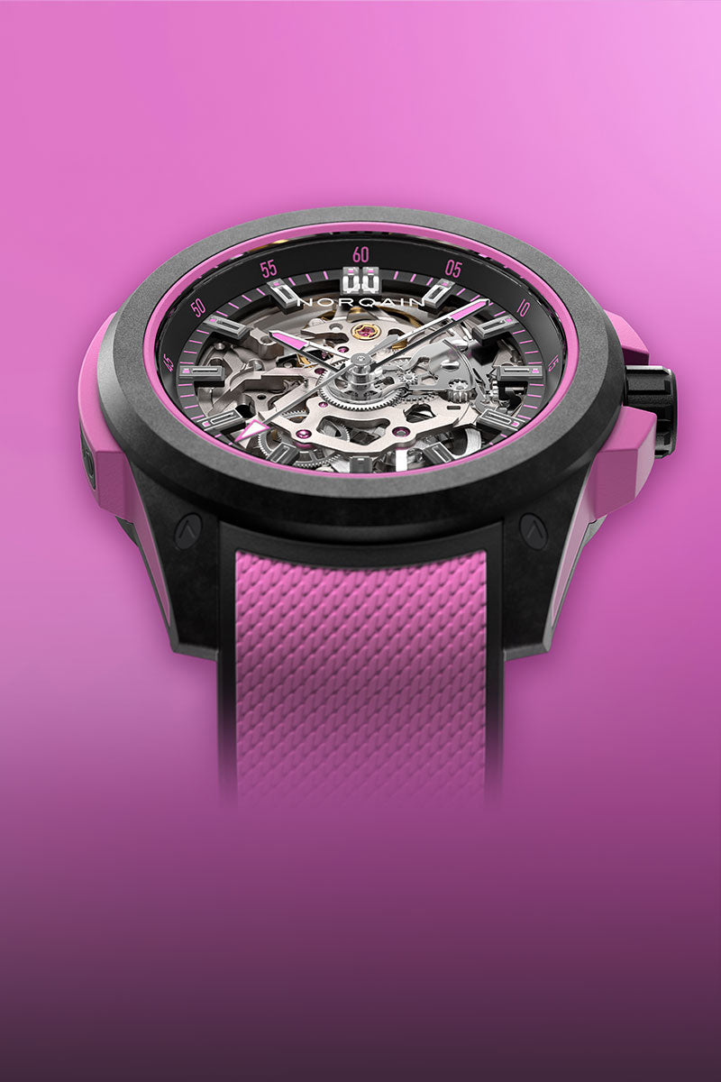 The Wild ONE 39mm, crafted from our proprietary ultra-light and ultra-robust NORTEQ® carbon fibre, is the ultimate high-performance sports watch. Powered by a mechanical automatic skeleton movement, it reveals the intricate craftsmanship and precision engineering at its core.