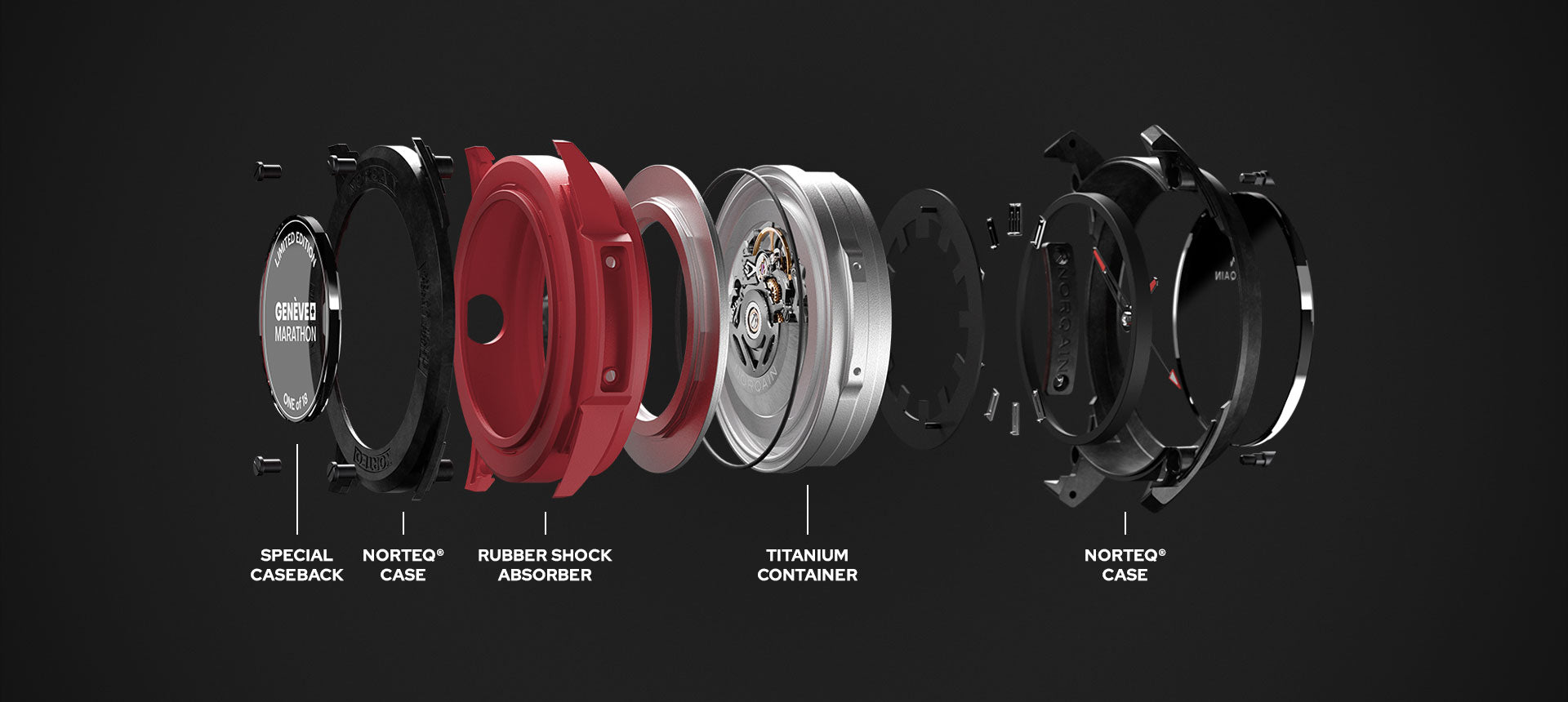 The Wild ONE, made with our proprietary, ultra-robust and ultra-light NORTEQ carbon fibre material, is the ultimate high-performance sports watch. Six times lighter than steel and 3.5 times lighter than titanium this Wild ONE has been designed in collaboration with Jean-Claude Biver, the NORQAIN team and the best Swiss suppliers.