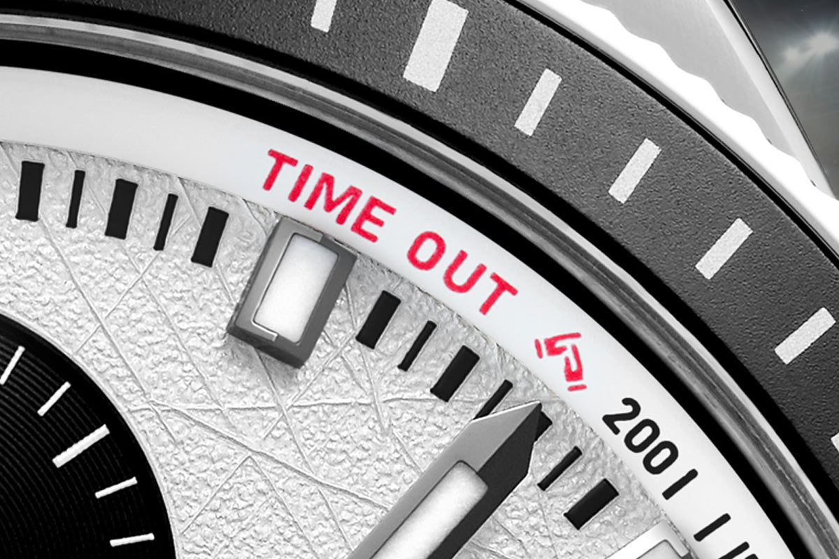 Ispirato alla superficie irregolare del ghiaccio dell’hockey su pista, il quadrante bianco effetto “ghiaccio graffiato” cattura l’intensità del gioco dal primo face-off fino all’ultimo secondo.