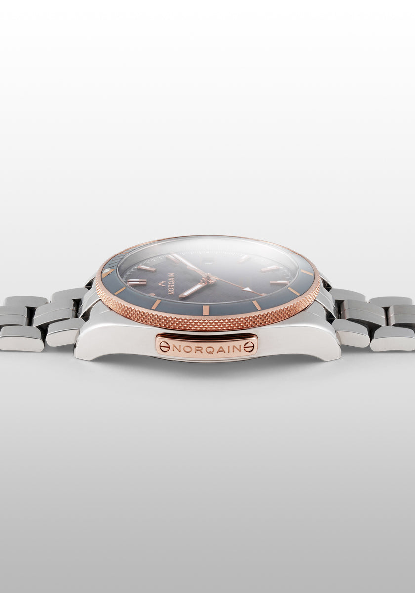 La linea Adventure incarna l'emozione di esplorare e conquistare il parco giochi della natura: i sentieri, le vette ed il mare. L'esclusivo motivo NORQAIN si ispira alle montagne svizzere.